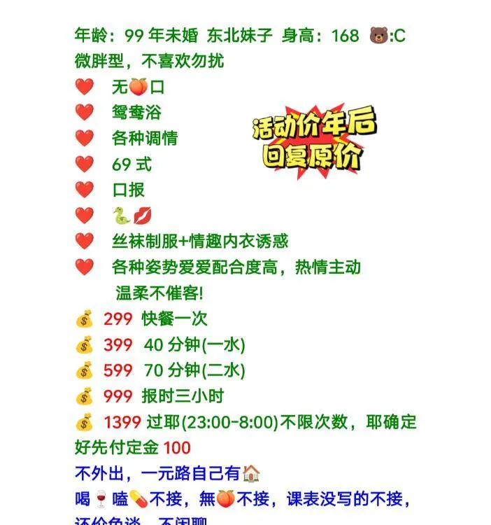 约过多次的一个丰满姐姐。小区停车方便。房间干净卫生。健谈爱聊天说话很直。爱笑给人放松感。口活真的没话说。每次都差点给我口爆了。啪啪也会配合各种姿势。逼逼肥很紧水多会夹。两个小时六百随便搞。时间绝对满钟。